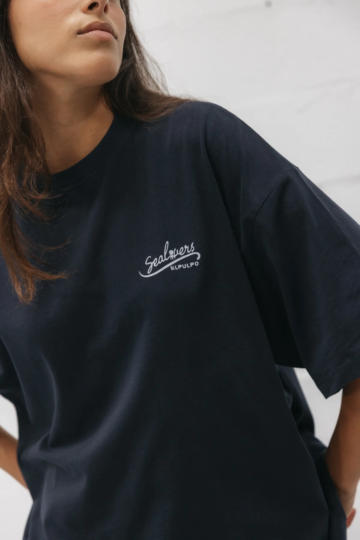 Camiseta unisex confeccionada en 100% algodón en color azul marino delavé. Print delantero en el pecho y print Sealovers Atlantic Culture en la espalda.