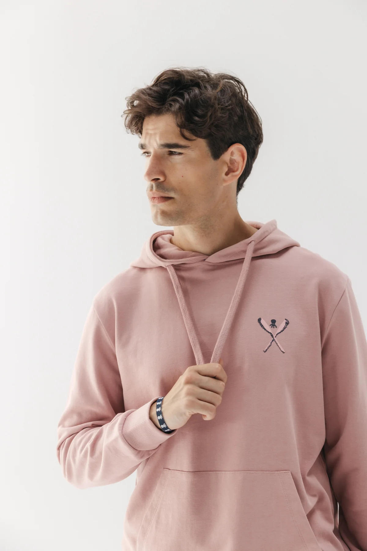 Sudadera con capucha confeccionada en 100% algodón orgánico en color rosa piedra. Logo en pecho y print trasero palas dibujadas. Regular fit, bolsillo frontal de canguro, cuello con capucha y detalle cordones con herretes a contraste.